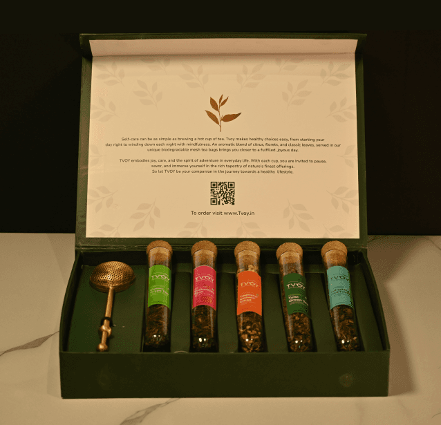 Presented in a sturdy gift box, it features five test tubes filled with orthodox blend green teas, celebrating the chemistry of brewing. A distinctive gift loved by International delegates and tea connoisseurs alike.