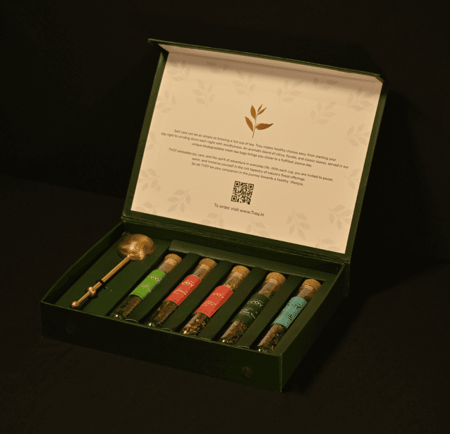 Presented in a sturdy wooden gift box with six compartments and an elegant latch, ROOTED offers a refined selection of teas including classic green teas, wellness blends and floral orthodox varieties.