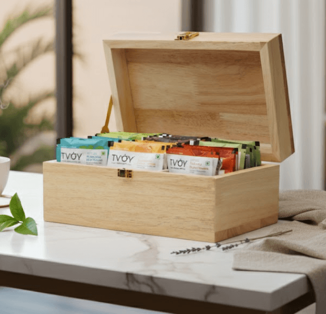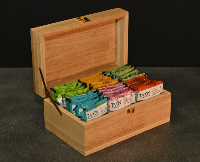 Presented in a sturdy wooden gift box with six compartments and an elegant latch, ROOTED offers a refined selection of teas including classic green teas, wellness blends and floral orthodox varieties.
