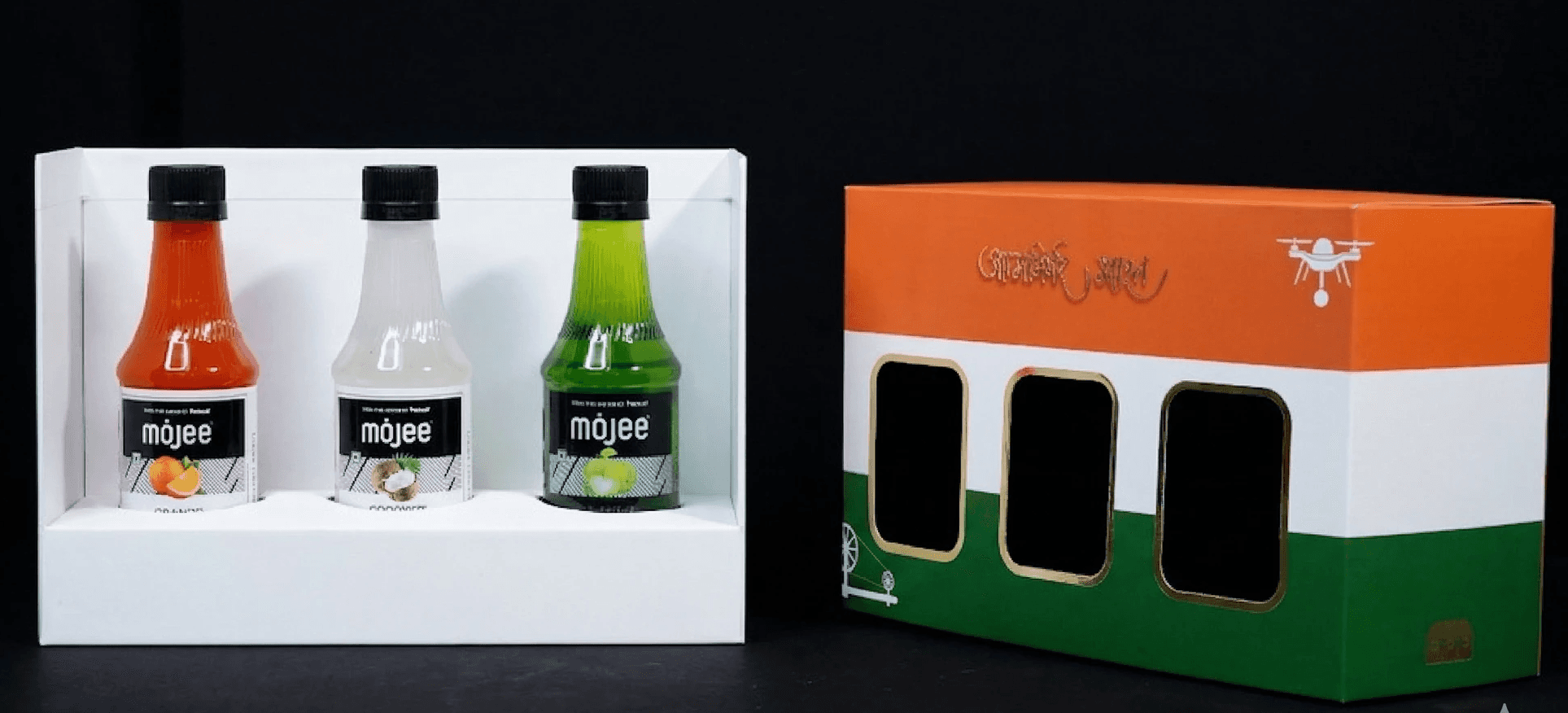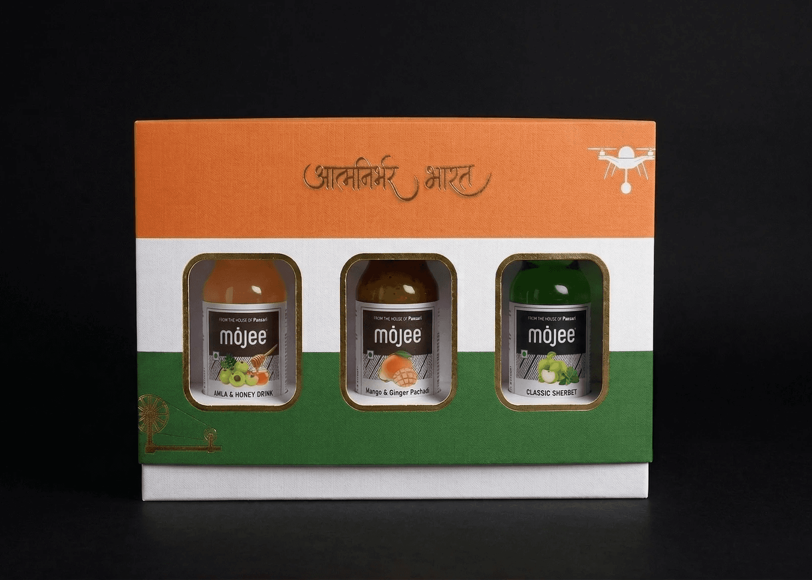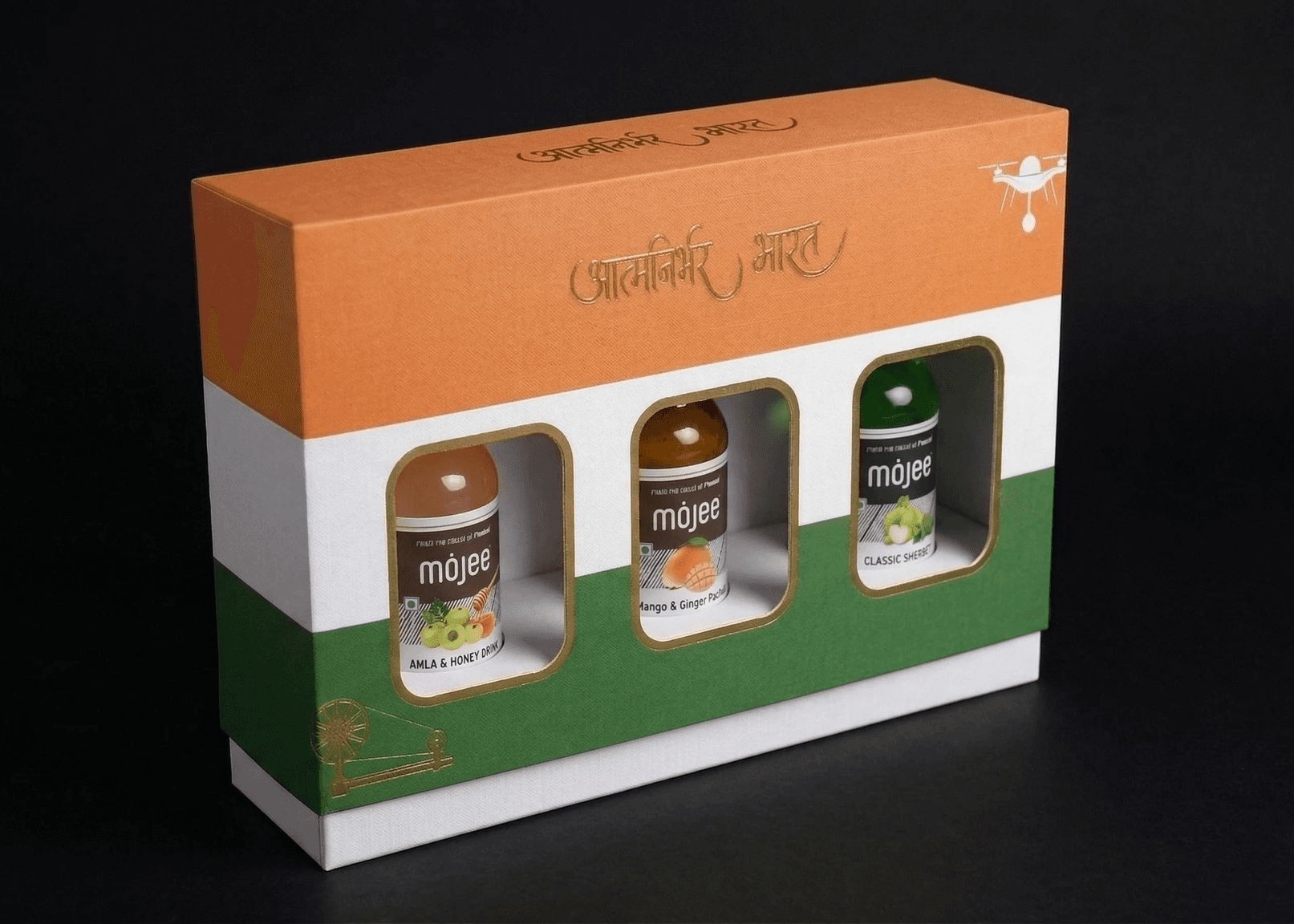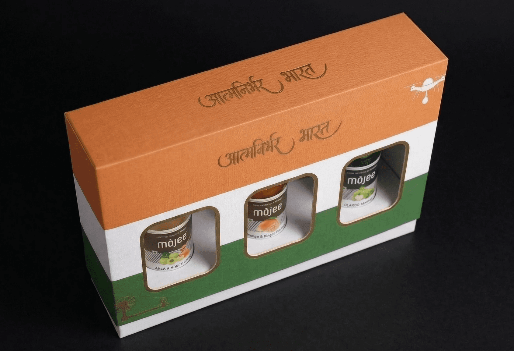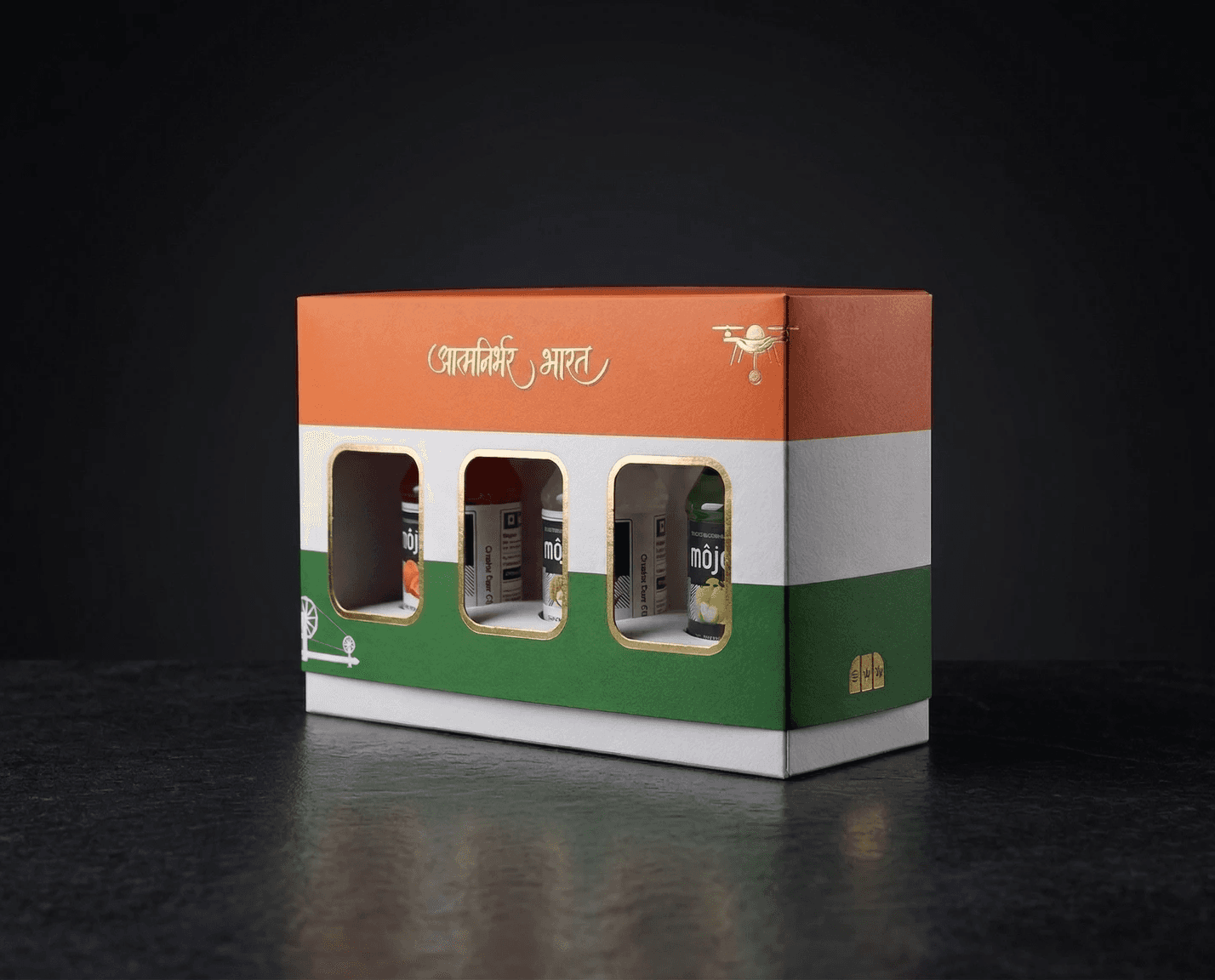 A vibrant gift inspired by the spirit of Atmanirbhar Bharat. The box cover symbolises India's journey from the charkha to modern drones, celebrating a nation that continues to innovate and grow.